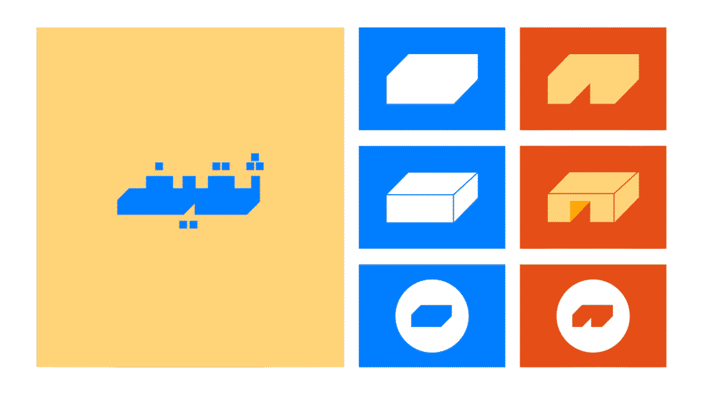 أثناء جمع الإلهام، لاحظت أن أغلب أجهزة التكييف وتراكيبها تعتمد على المستطيل كعنصر أساسي في تكوينها. لذلك كان المستطيل حجر الأساس في بناء الهوية البصرية.
