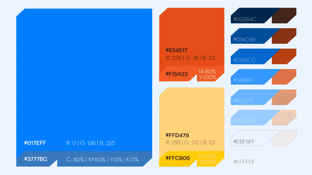 الألوان تمحورت حول الأزرق والبرتقالي، باعتبارهما لوني البرودة والحرارة. لم يتم استخدام الأحمر لأنه يوحي بالخطر والتهديد؛ بل استُمدت حرارته في صيغة أكثر إيجابية عبر البرتقالي، ليجمع التصميم بين الدفء والانتعاش دون إيحاءات سلبية.