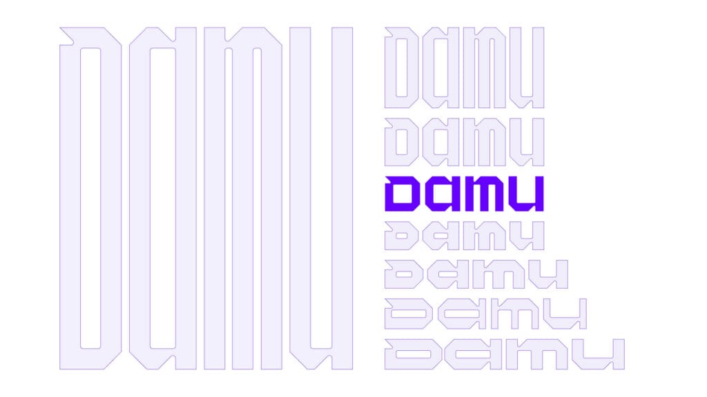 تم اختيار الخط الأساسي Harmes، وهو خط مميّز يعكس شخصية دامو بامتياز. عندما اكتشفناه، شعرنا وكأنه صُمم خصيصًا لهذه الهوية — جريء، مستقبلي، ومليء بالقوة. يُستخدم هذا الخط بشكل أساسي في العناوين الرئيسية ليمنح العلامة أسلوبًا بصريًا مميزًا.